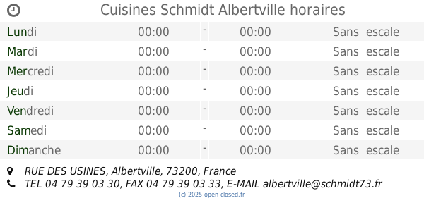 It is also possible to : Modifier ces HEURES D'OUVERTURE of Store Cuisines Schmidt Dans Albertville, RUE DES USINES,